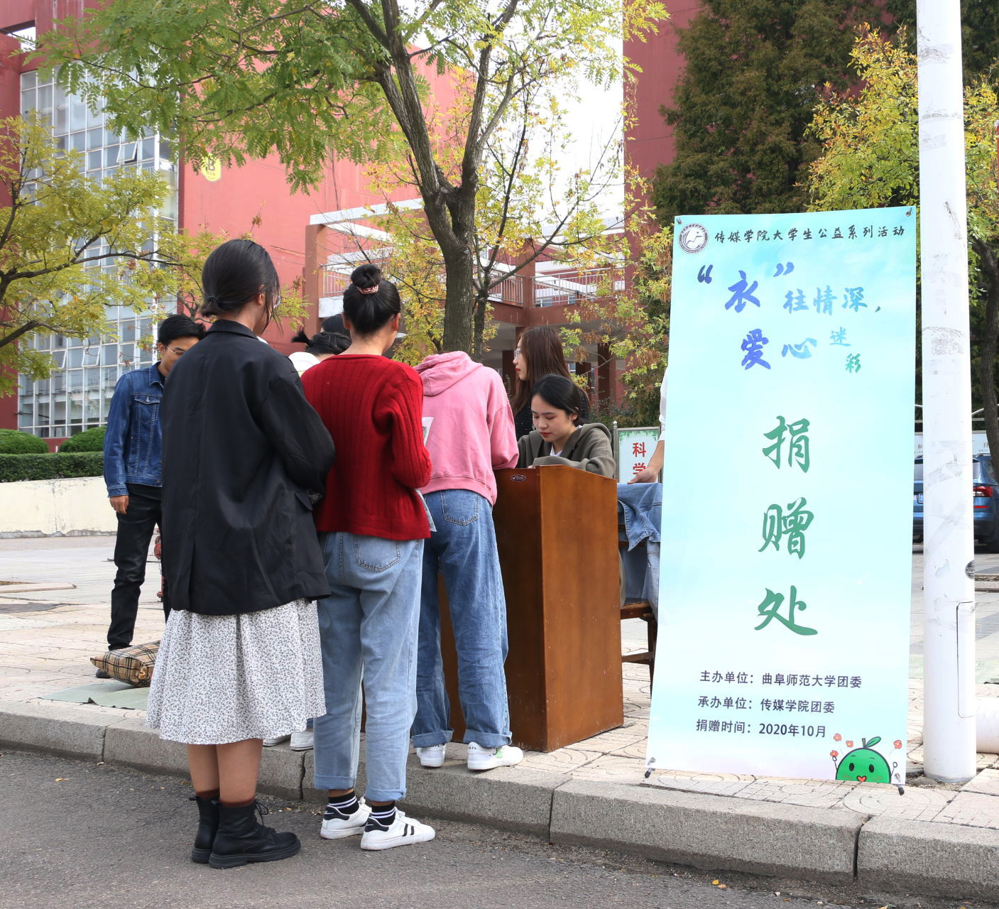 曲阜师大新闻中心讯 “衣”往情深,爱心迷彩。日前,万象城官方网站校团委主办、传媒学院组织承办公益捐赠活动,募捐闲置军训服并最终送予城市一线工人。10月12日下午,受赠方山东日建建设集团工会主席秦卓携工人代表出席捐赠仪式,日照校区党工委、学工处、校团委、传媒学院相关负责人及部分师生代表参加捐赠仪式。