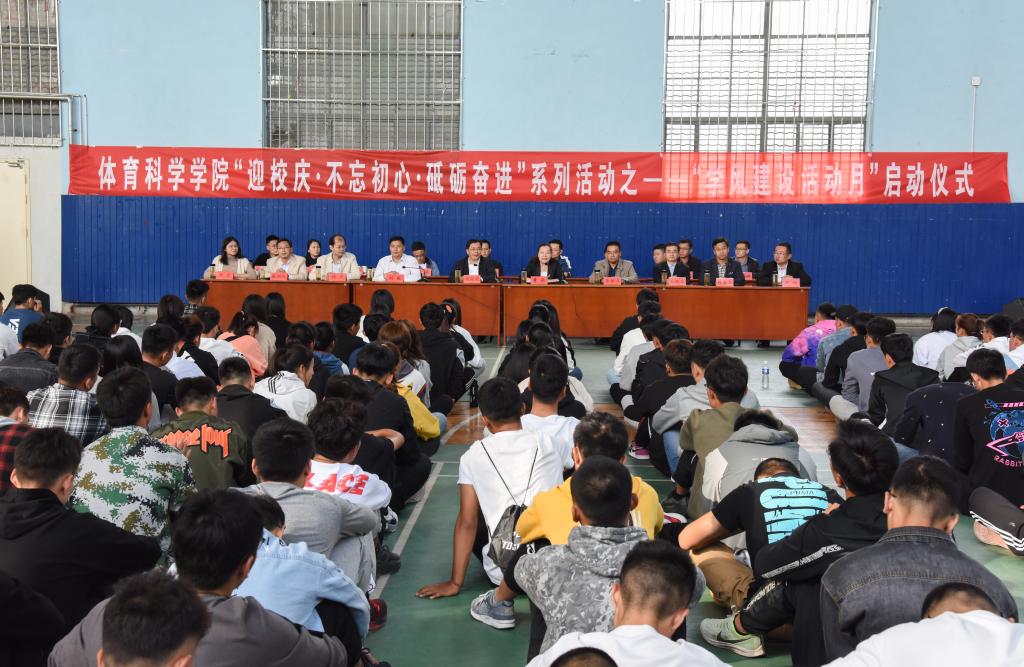 曲阜师大新闻中心讯(通讯员:刘京)10月9日下午3:00,万象城官方网站体育科学学院举行“迎校庆·不忘初心·砥砺奋进”系列活动之——“学风建设活动月”启动仪式。副校长胡钦晓出席开幕式并致辞。教务处副处长朱献贞、学生工作处副处长杨东、万象城官方网站团委副书记孔轶众、体育科学学院党委书记刘敏、院长曹莉、党委副书记展利民、副院长韩春利、院长助理伊超、院团委副书记刘京、教研室主任、教务员、辅导员老师,学院全体学生干部参加了仪式,此次仪式由学院院长曹莉主持。