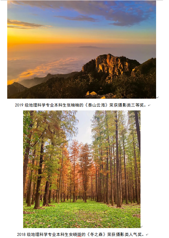 曲阜师大新闻中心讯   近期,中国地理学会面向全国高校学生举办第二届“映像·新知”摄影摄像大赛。曲阜师大地理与旅游学院积极组织研究生和本科生参赛,并取得佳绩——5幅作品荣获三等奖,10幅作品荣获人气奖,宁晓文、石峰、赵岩、李梅、郭浩五位老师荣获优秀指导教师奖,地理与旅游学院荣获大赛优秀组织奖。