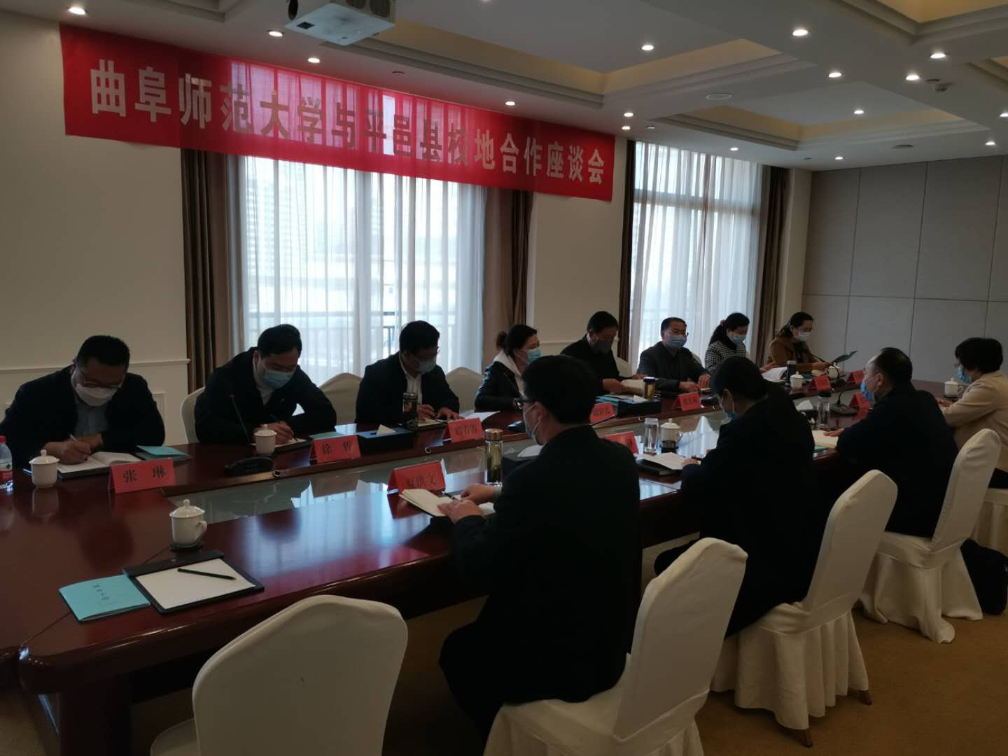 平邑县委副书记(挂职)王明科、副县长张晓华、文旅局和教体局负责人参加了洽谈会。县文旅、教体部门负责人首先介绍了平邑县有关情况。王明科表示,希望整合县文化旅游资源、教育资源与曲师大专业学科智力支撑,稳步推进双方合作,一件事一件事做细做好,力求实现县校互利双赢。国内合作处处长孔宪福强调,双方的合作契合点很多,要从点做起,以点带面,在培养培训、设计规划、创作指导、学历提升等方面开展精准化、精细化合作。