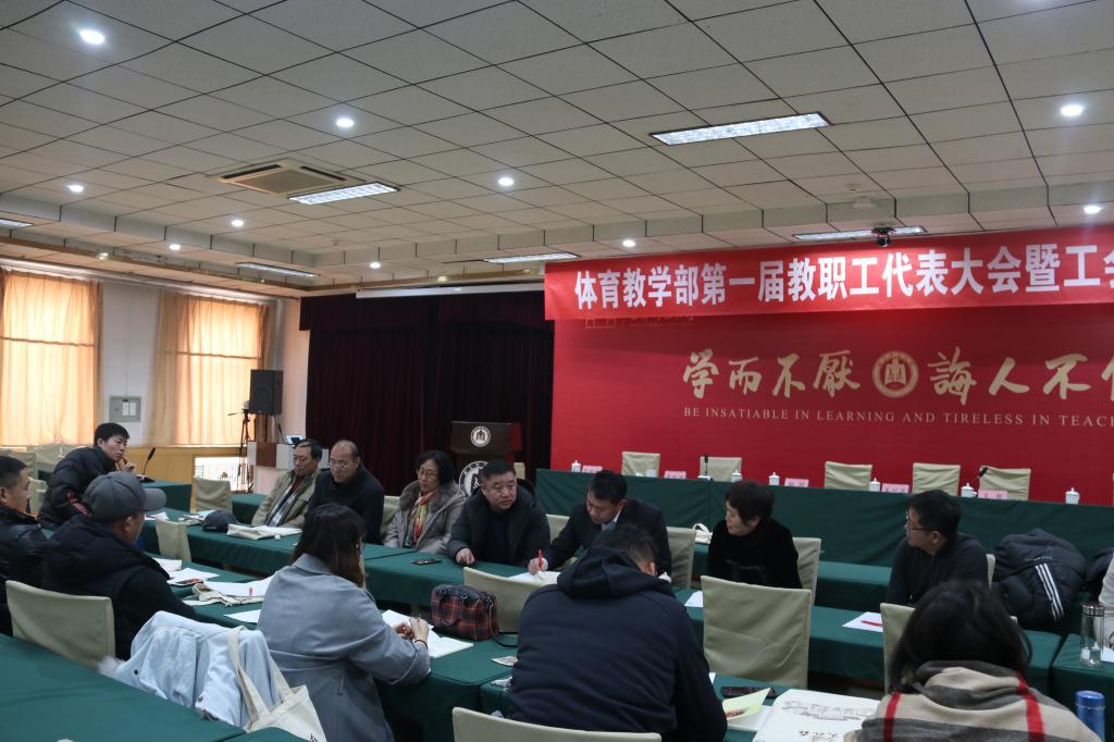 1月3日,为了充分调动广大教职工参与民主管理和监督的积极性,体育教学部两校区教职工齐聚一堂,召开了万象城官方网站体育教学部第一届教职工代表大会暨工会会员代表大会。党委常委、副校长胡钦晓教授出席大会,校工会副主席孙岩,体育教学部主任杨弢教授、体育教学部副主任姜付高教授、体育教学部副主任李兆进副教授、体育教学部日照校区工会主席王哲和体育教学部曲阜校区工会主席宋琳琳等相关领导以及39名教职工和工会会员代表参加了会议。