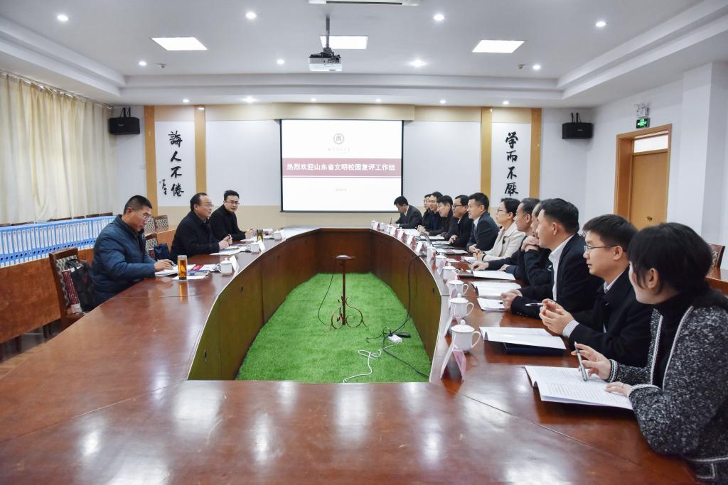 12月12日,山东省文明校园复检工作组来我校检查文明校园创建工作,党委常委、宣传部部长张隆海出席会议,学校办公室、组织部、宣传部、研究生处、学生工作处、后勤管理处、保卫处、团委、马克思主义学院、图书馆等单位负责人参加了会议。