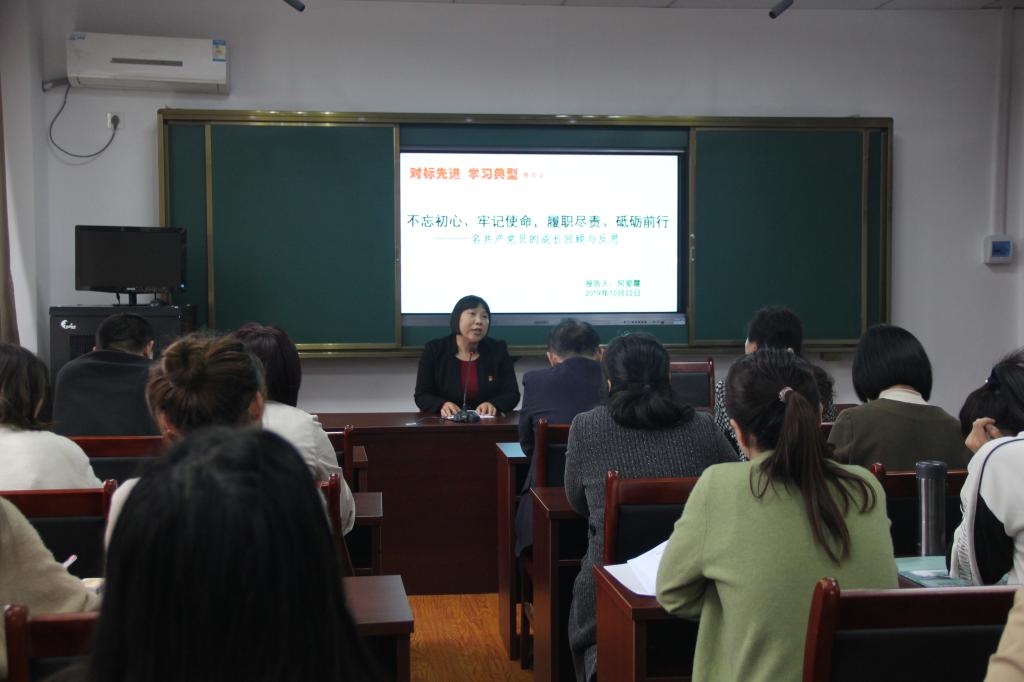 为推进“不忘初心、牢记使命”主题教育走深走实,充分发挥优秀共产党员的示范带头作用,着力营造争当先进、勇于担当的干事创业氛围,10月22日,继续教育学院举行“对标先进、学习典型”主题党日活动,活动由党总支书记茌淑君主持,全体师生党员及研究生入党积极分子参加。