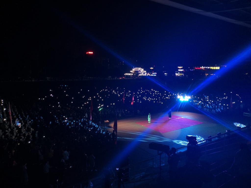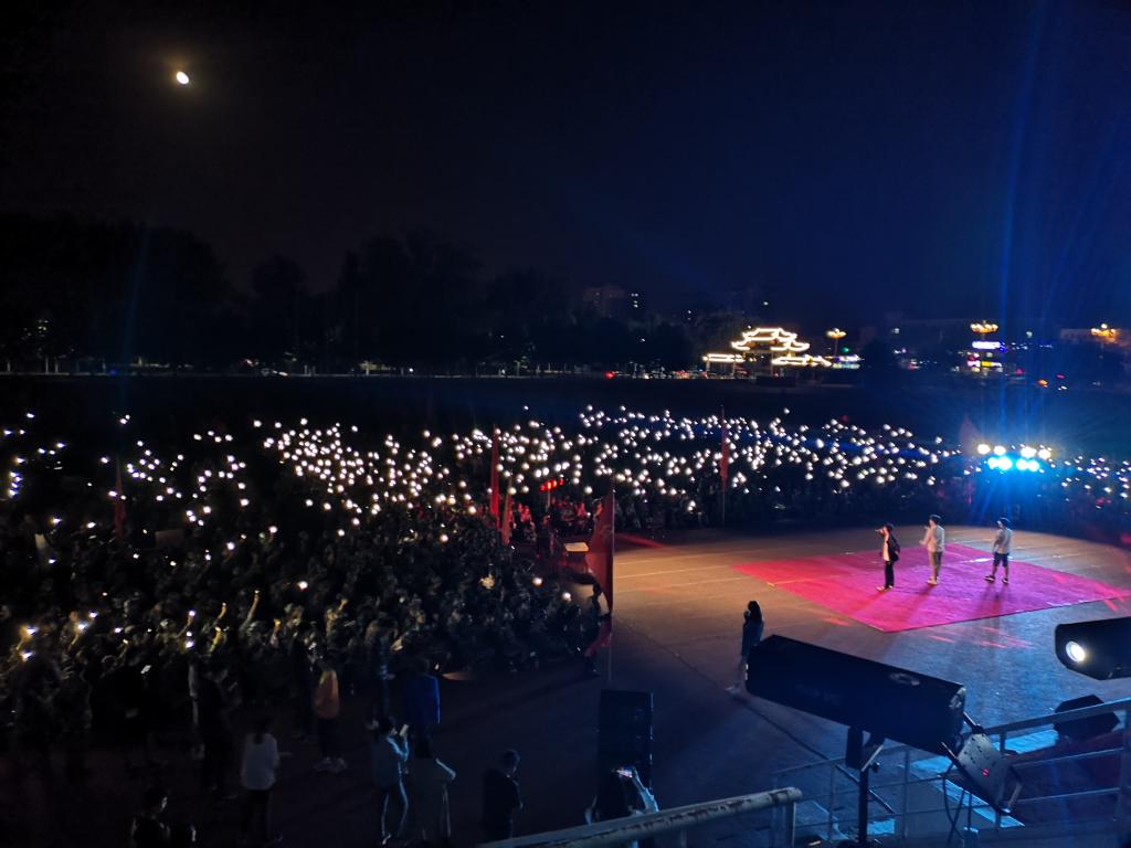 918日晚,在两校区操场,分别开展了红歌汇演活动。各学院组成合唱方队,同学们身着军装,慷慨激昂,声音响彻云霄。为了更充分地展示同学们的爱国热情和各学院风采,各学院还设计了挥舞红旗、肢体表演、配乐朗诵等形式,精彩绝伦。学院红歌展演期间,大学生艺术团等还穿插表演了精彩的节目。现场聚光灯、手指灯、手机电筒灯交相闪烁,掌声、歌声不绝于耳,夜幕下的操场变成了同学们以独特形式表达爱国情感和集体主义情怀的大舞台。