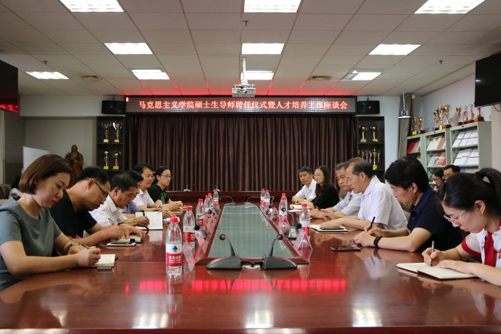 扈庆学向受聘的硕士生导师表示祝贺,对硕士生导师发挥的作用表示充分肯定,希望各位老师不断提升自身的能力与素养,期待马克思主义学院进一步凝练特色,为办学层次的提升和人才培养质量提高打下扎实的基础。