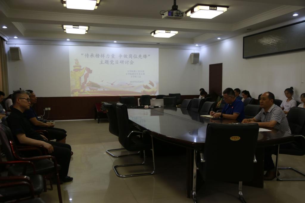 6月26日下午,文学院全体党员、40岁以下青年教工和入党积极分子开展了“传承榜样力量,争做岗位先锋”的主题党日活动。