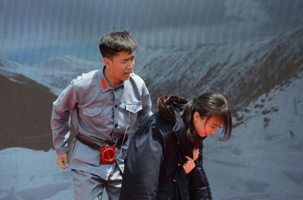 此次献礼活动分为三部分:第一部分是大学生党员法律小讲堂,由2名大学生党员立足专业角度,从婚闹民俗和电信诈骗视角,讲解了所涉及的相关法律知识,引导游客在日常生活中不要触及法律底线,提高安全意识、防范上当受骗;第二部分为红色文化,《金色的鱼钩》《军需处长》等经典小巧的红色篇章被搬上话剧舞台,演员们和游客们含泪回忆了革命胜利的艰辛路程,节目歌颂了在革命中英勇献身的战士们不惧艰难的革命乐观主义精神;第三部分为优秀传统文化传承部分,青年大学生用古谱诗词传唱《静夜思》《赋得古原草送别》等歌曲,优美动听的古谱旋律演绎着大家熟悉的诗歌,曲风清新,朗朗上口,引得在场小朋友积极互动。