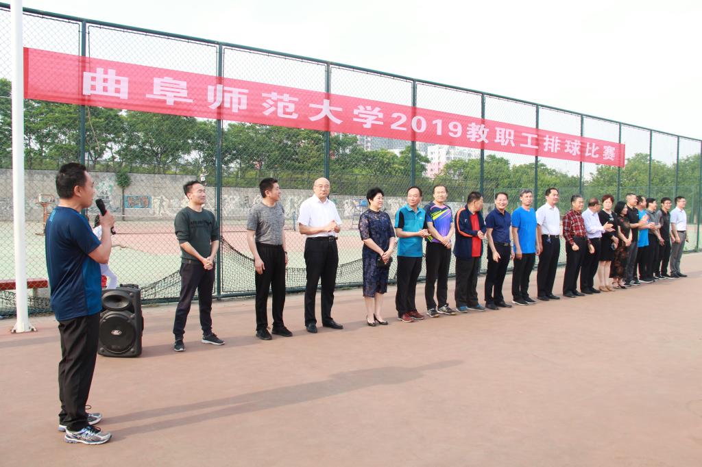 为庆祝新中国成立七十周年,展现我校教职工的运动风采,5月31日,我校2019年教职工排球比赛顺利拉开帷幕。副校长扈庆学宣布比赛正式开始。