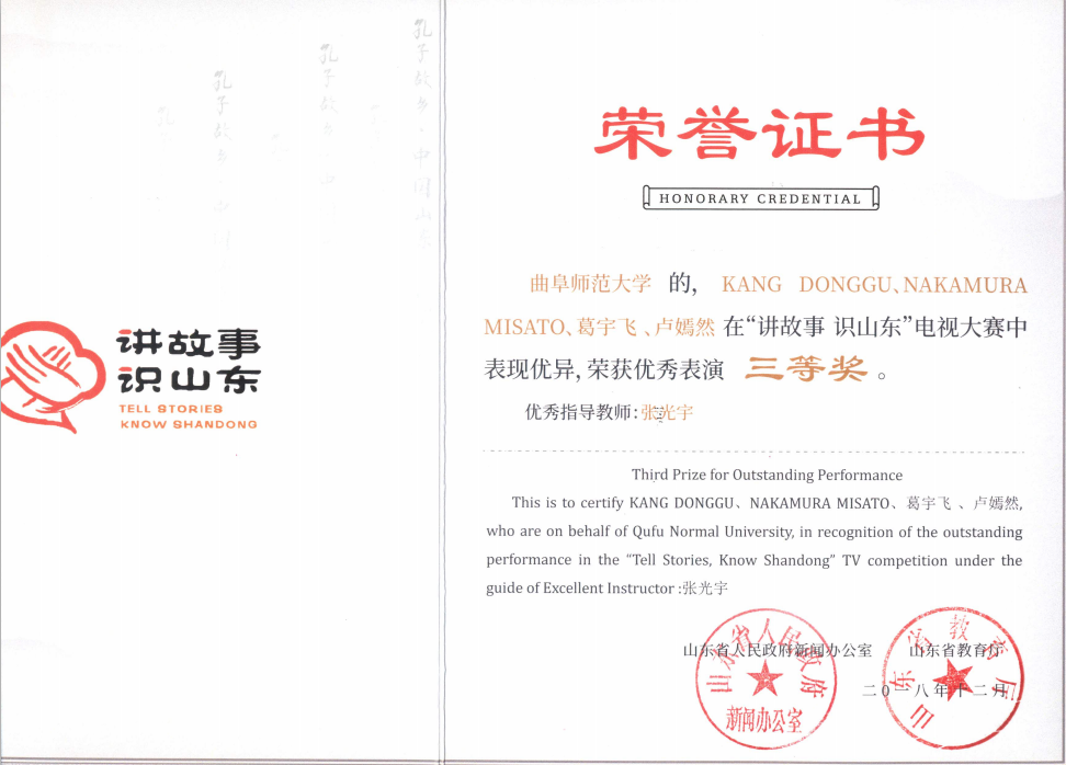 我校中外学子在“讲故事 识山东”电视大赛中获奖