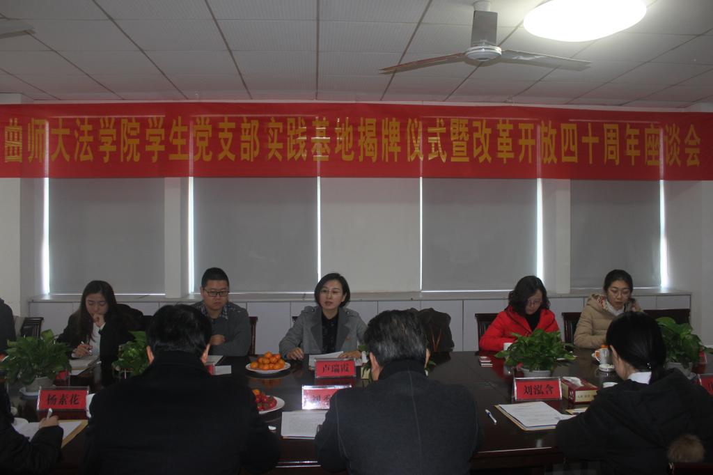 为将全国党建工作样板支部建设工作落到实处,为学生党员提供实践平台,经沟通考察,我校法学院与诸城华元集团党委合作,于2018年12月28日,在华元集团举行我校法学院学生党支部实践基地揭牌仪式。华元集团董事局主席刘季林,党委书记管廷胜,法学院党委副书记、学生党支部书记卢瑞霞及师生党员代表参加了本次活动。仪式由管廷胜主持。