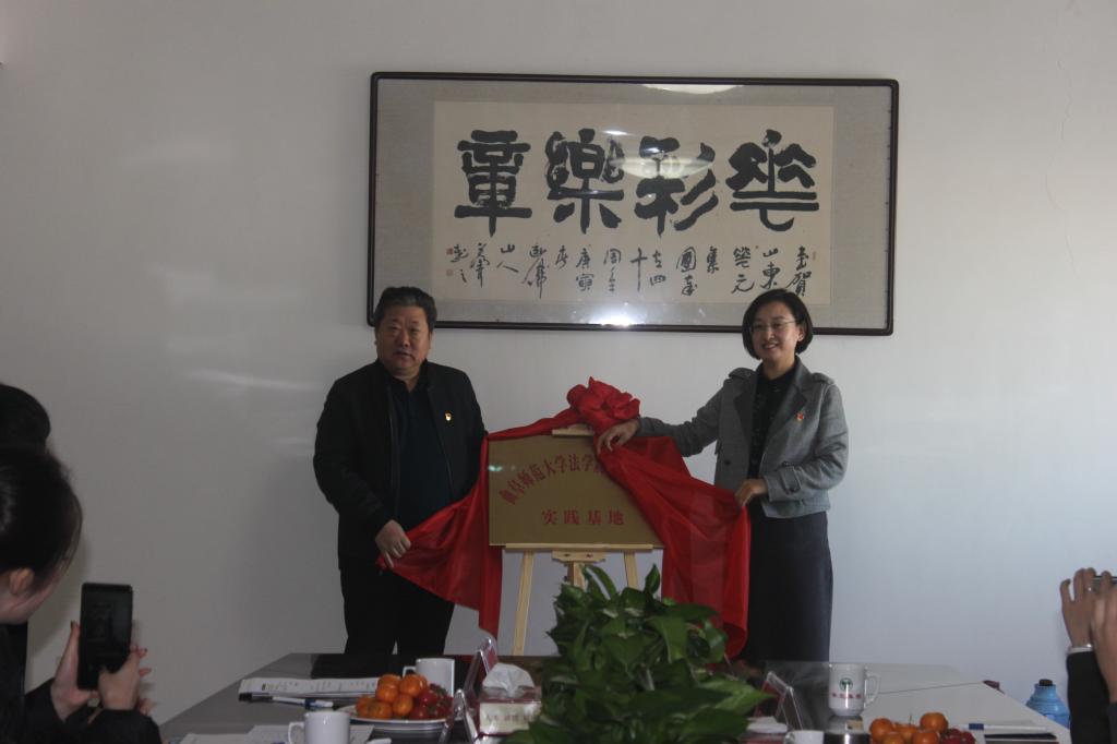仪式上,卢瑞霞介绍了我校法学院学生党支部建设情况以及对实践基地建设的规划,指出诸城是中国共产党创始人之一王尽美的家乡,有着浓厚的红色文化底蕴,同时华元集团是改革开放初期,勇敢尝试探索,以市场经济运作并取得巨大成功的企业,是党建与中心工作结合的良好典范,学生党支部在这里建立实践基地,有利于突出学生党员的“五服务”要求,进一步锤炼党性,提升宗旨意识。同时学生党员可以结合自身的法学专业特色和学校的儒家文化特色,参与集团企业事务,在企业文化建设中发挥作用。随后,刘季林与卢瑞霞共同为实践基地揭牌。