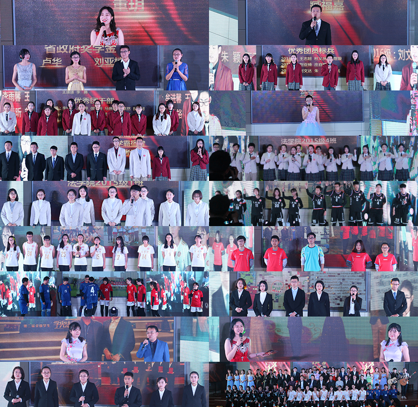 红毯秀上,随着颁奖老师们依次致颁奖词,优秀学子们神采飞扬走上红毯并发表感言。本次红毯秀共表彰了个人、宿舍、班级、团队中的十几个方面的优秀学子,包括:第二届学宪法讲宪法活动的全国季军,山东省学宪法讲宪法比赛的两届冠军,山东省模拟法庭比赛2017年冠军,国家奖学金、省政府奖学金、山东省优秀学生、山东省优秀学生干部,国家级科技创新项目获奖团队、荣获省级科技文化奖项的社团,获得中国青年网和省电视台报道的社会实践团队,荣获全国英语竞赛国家级一等奖的学子,以及高分通过司法考试的同学们。红毯秀上还表彰了十佳百优班级、五四红旗团支部、书香绿植各类特色宿舍、强健青春体魄的各类球队。法学学子在红毯秀上还呈现了精彩的古筝、二胡、舞蹈等才艺展示。