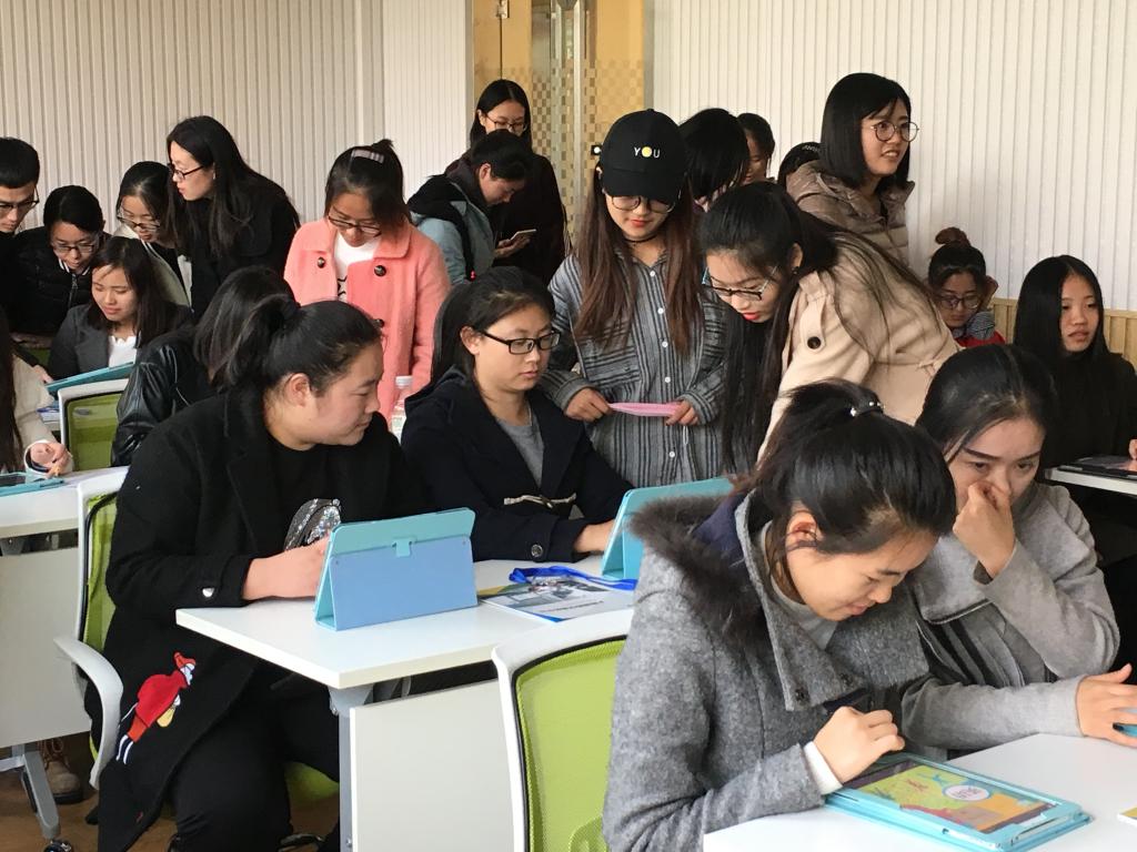 见习期间,52名教育技术学专业本科生还赴教育大数据研究院进行了参观学习,实地了解了大数据研究院的总体概况、发展目标、发展思路、发展支撑并亲身体验了智慧课堂的教学、操作过程。
