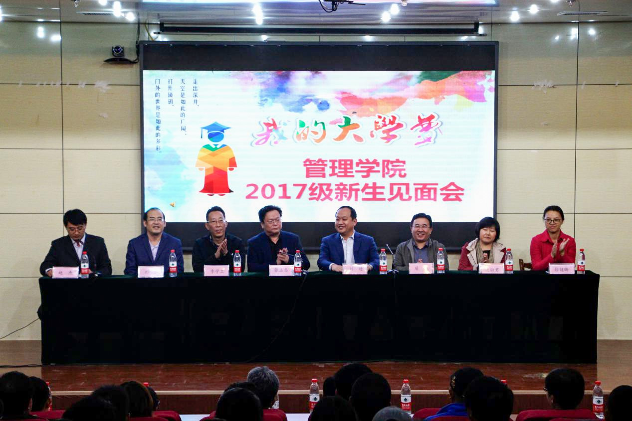 10月12日晚,管理学院2017级新生见面会暨教师表彰大会在日照校区图书馆报告厅顺利举行。运筹学研究院院长张玉忠、管理学院党委书记刘进出席会议,管理学院教师代表和2017级全体新生参加大会。会议由管理学院党委副书记赵杰主持。