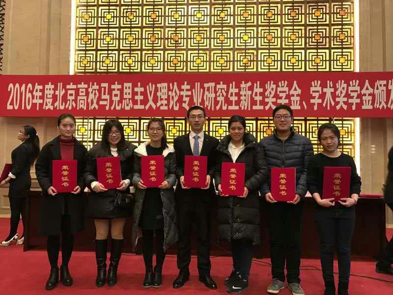 2016年度北京高校马克思主义理论专业研究生新生奖学金、学术奖学金颁发仪式于12月30日上午在北京会议中心举行。教育部社科司、北京市委宣传部、北京市委教育工委、北京市教委相关领导为161名获奖学生颁奖。我校马克思主义学部9位校友获此殊荣。 在颁奖会现场,来自北京各高校的马克思主义学部毕业生聚集在一起,成了颁奖会一道亮丽的风景线。