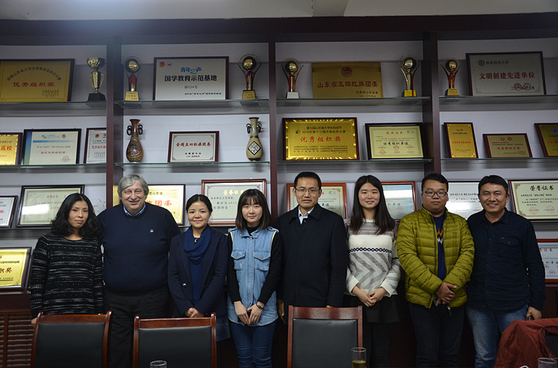 座谈会伊始,赵满海对我校的办学特色、当下的国学教育情况和孔子文化在我校的传播情况等进行了详细介绍。随后,双方就传统文化和国学教育方面展开讨论,与会学生各抒己见,发表自身对于儒家文化的学习了解,罗伯特先生也表达了自己对中华文化尤其是儒家文化的热爱与向往。双方兴致昂扬,最终达成中意文化共促进的美好愿望。座谈会最后,石璐老师对我校共青团传统文化教育的开展情况进行了全面介绍。