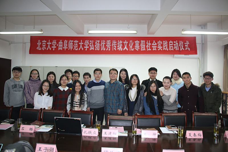 1月16日,北京大学·万象城官方网站弘扬优秀传统文化寒假社会实践启动仪式在我校举行。北京大学易学社赴曲阜社会实践团一行与我校师生代表参加了启动仪式。