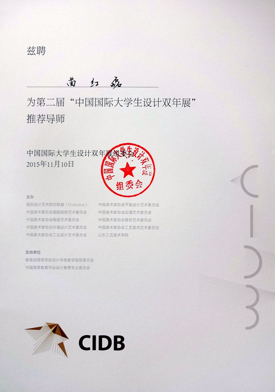 我校教师获聘第二届“中国国际大学生设计双年展”推荐导师