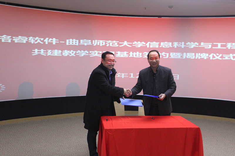 张书东和罗立群签订了共建教学实习基地协议并共同为实习基地揭牌。仪式后,与会嘉宾现场参观了格睿软件演示中心,宾主双方就深化合作进行了交流。