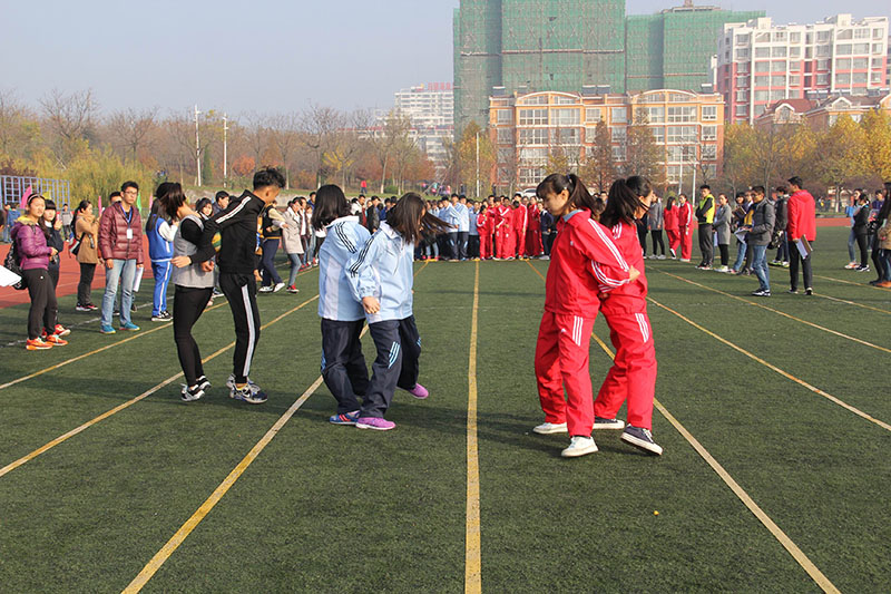 开幕式后,来自日照校区11个学院的近2000名2015级同学开始了气氛热烈的团体比赛。运动会共有搭桥过河、心心相印、双腿夹球接力、抛绣球、合力吹气球、双球赶跑、电气小火车等9个团体比赛项目,旨在培养同学们的人际沟通能力和团体协作意识,帮助大家塑造乐观阳光的心态,坚强的意志,和谐的人际关系。参赛队员积极、投入、互相配合的完成比赛项目,在欢呼呐喊声和加油声中享受着比赛。