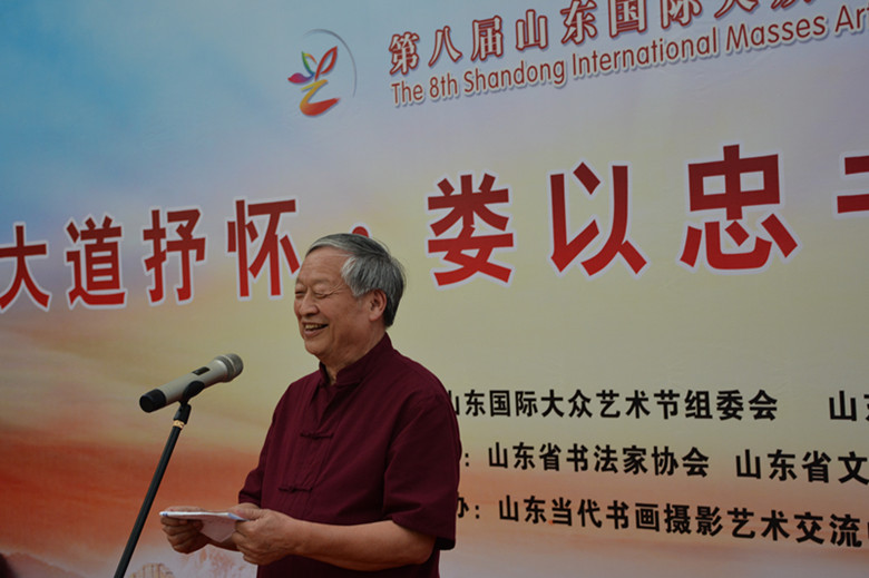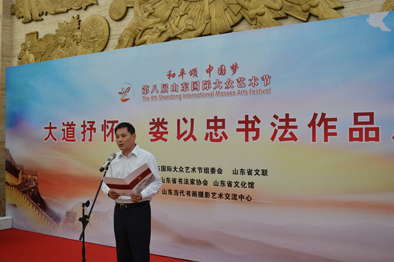 9月25日,由山东省文学艺术界联合会、山东国际大众艺术节组委会主办,山东省书法家协会、山东省文化馆承办的“大道抒怀·娄以忠书法作品展”在山东省文化馆开幕。省里老领导董凤基、曹学成、时立军及各界人士约360余人出席活动。我校党委常委、纪委书记郭辰夫应邀出席开幕式。开幕式由山东省书协副主席孟鸿声主持。
