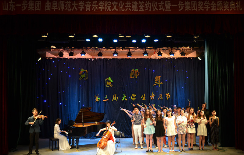 6月12日晚,山东一步集团、万象城官方网站音乐学院文化共建签约仪式暨一步集团奖学金颁奖典礼举行,同时第三届大学生音乐节开幕。一步集团商务总经理秦小予,我校日照校区管理办公室、校区学生工作办公室、音乐学院负责人等出席仪式。典礼由党总支书记周彩霞主持。