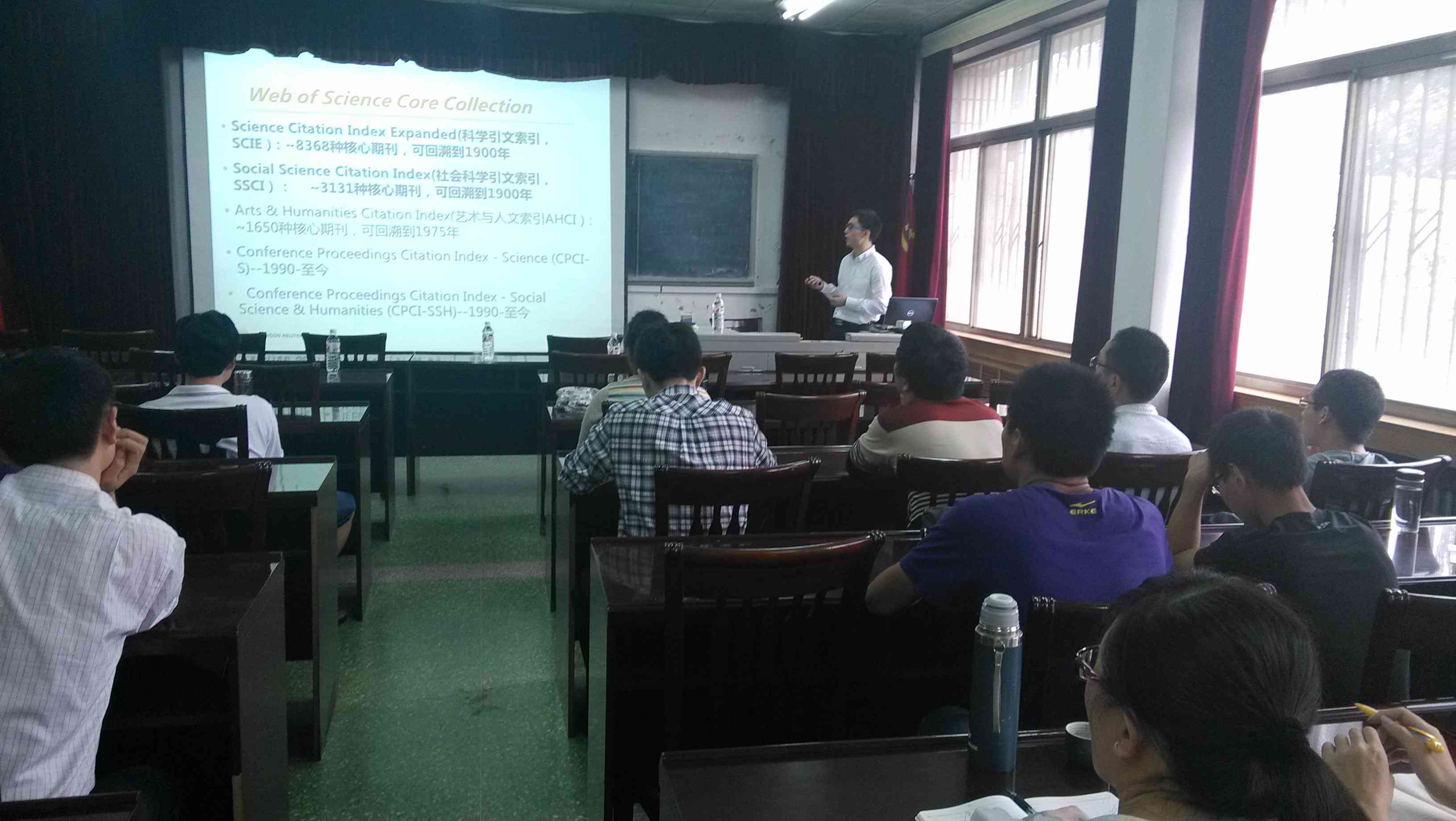 在曲阜校区,科技处邀请了Thomson Reuters集团北京公司王硕博士,作了“SCI数据库在科技创新中的应用”的专题辅导报告,其中说明了SCI数据库特点,以及对如何把握数据库文献脉络,掌握科学的检索方法,进行创新研究进行了分析讲解演示,并介绍了SCI投稿格式及技巧、英文参考文献引用技巧、SCI数据库在申请国家基金方面的应用等,受得师生的一致好评。