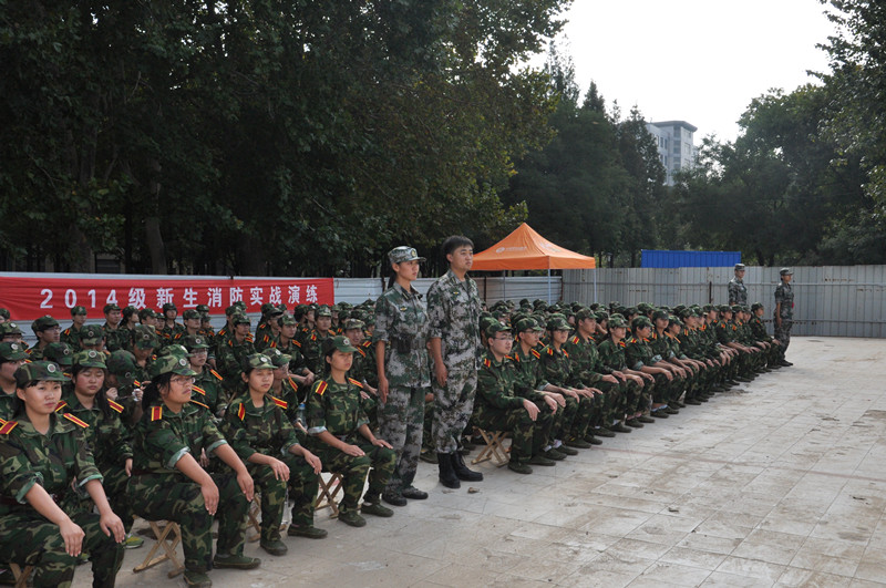 9月19日下午,作为新生军训的内容之一,我校联合曲阜市公安消防大队举行了“2014级新生消防实战演练”,学生工作处、保卫处负责人参加活动。