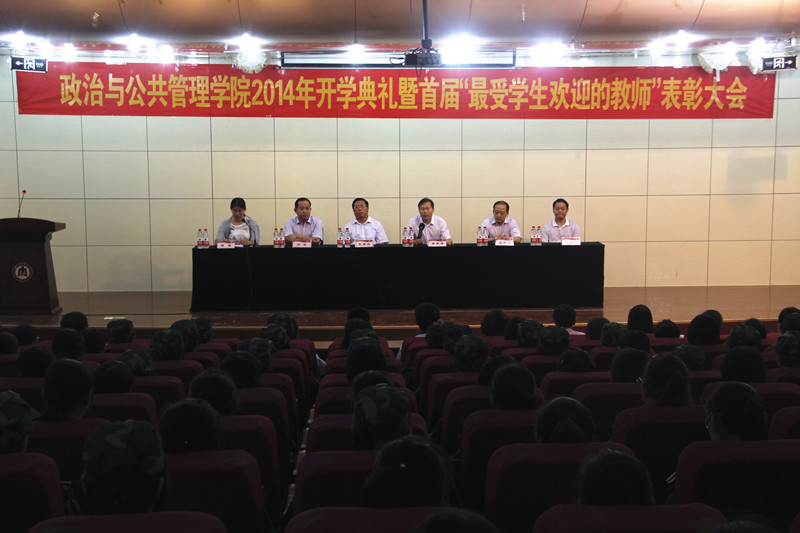 此次评选活动按照“厚德、敬业、爱生、博学、善导”的评选标准,在学院在职在编的一线专任普通教师(学院领导不参与)中进行。评选活动自9月1日启动以来,得到了学院全体同学的积极参与,各年级分专业对学院老师进行无记名投票,成立的评选委员会全程监督,保证了评选的公平公正。9月10日晚,政治与公共管理学院2014年开学典礼暨“最受学生欢迎的教师”表彰大会隆重召开。会上,段文阁教授、刘煜教授、林士俊副教授、朱艳讲师等四位老师精彩亮相,荣获首届“最受学生欢迎的教师”荣誉称号。