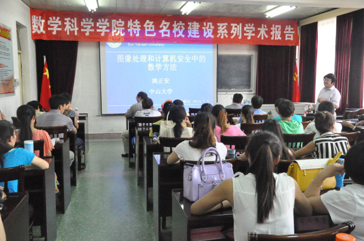 7月3日下午,中山大学数学与计算科学学院院长姚正安教授在数学科学学院三楼报告厅为数科院师生做了“图像处理和计算机安全中的数学理论和方法”的学术报告。