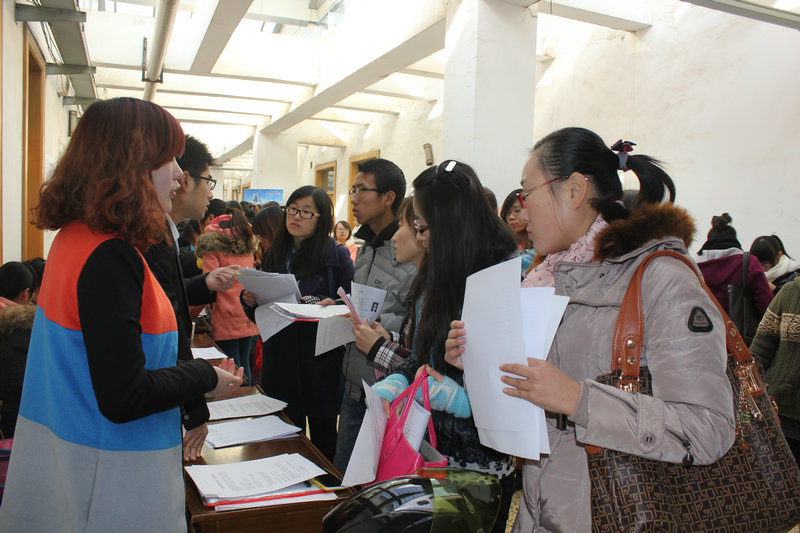 11月30日,印刷学院2014届毕业生校园招聘会举行。此次招聘会吸引了包括山东亚太森博浆纸有限公司、北京鸿博昊天科技有限公司、保定中画美凯印刷有限公司、苏州金海薄膜科技发展有限公司、山东新华印务有限公司等省内外近30家知名印刷包装企业参会,共提供印刷、包装、设计、经济、管理、自动化等400多个就业岗位。招聘会现场气氛热烈,每家企业前台都围满了前来咨询问题、递交简历的学生。同时,各个教室部分参会企业也进行了宣讲,并对应聘学生进行了面试。参会企业对招聘活动的组织、应聘学生的综合素质,招聘效果都十分满意。
