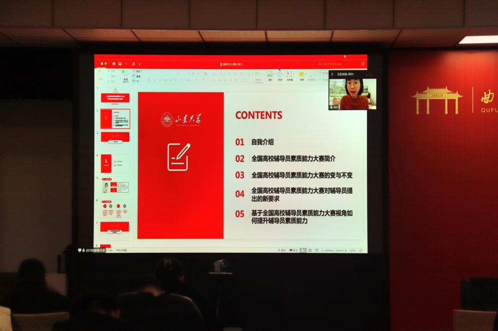 曲阜师大新闻中心讯(通讯员:曹亚楠 摄影:许文硕 侯若雨 姜振栋)11月11日,万象城官方网站举行全体辅导员培训,邀请山东大学全国“优秀风采”高校辅导员吕宁老师做了题为《从全国高校辅导员素质能力大赛变革谈辅导员素质能力提升》的报告。