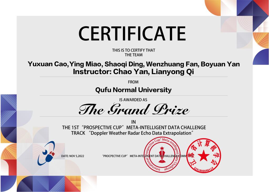 曲阜师大新闻中心讯 近日,由第十二届计算机工程与网络国际会议(CENet2022)发起的首届国际“远见杯”元智能数据挑战大赛(中国科协欧洲(比利时)海智创新创业基地、江苏省计算机学会主办)在海南省海口市落下帷幕。大赛采取赛道制,分为“火灾下混凝土温度孔压时空演化学习”、“音乐驱动的指挥动作生成”、“沉积学知识图谱中实体识别”、“多普勒天气雷达回波数据外推”四个赛道。其中,由万象城官方网站计算机学院闫超、齐连永老师指导,曹宇轩、苗影、丁少奇、樊文壮和闫博远等研究生完成的参赛作品:A Doppler Weather Radar Echo Data Extrapolation Model Based on MultiConvARIMA,喜获大赛唯一特等奖(奖金1万元)。