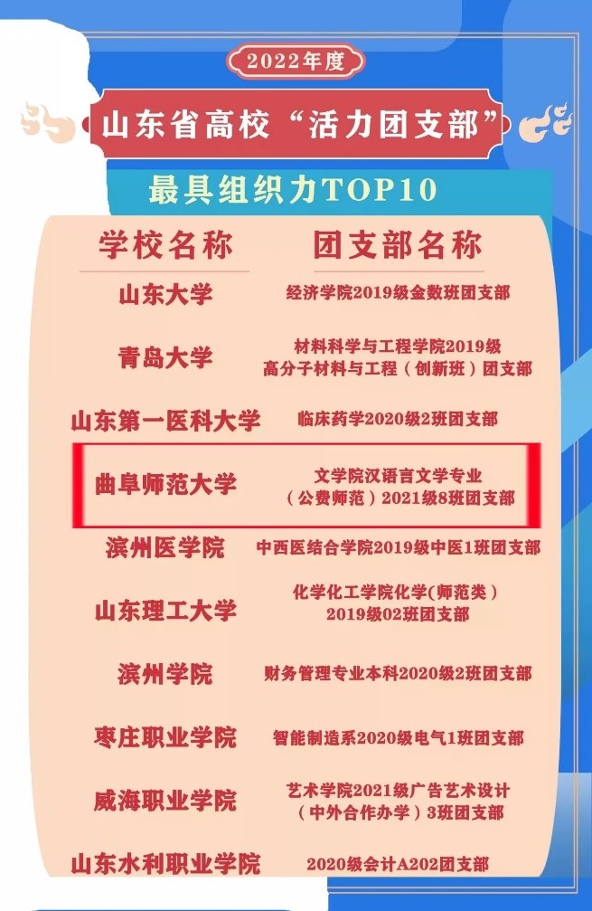 曲阜师大1个团支部1个社团获评2022年度