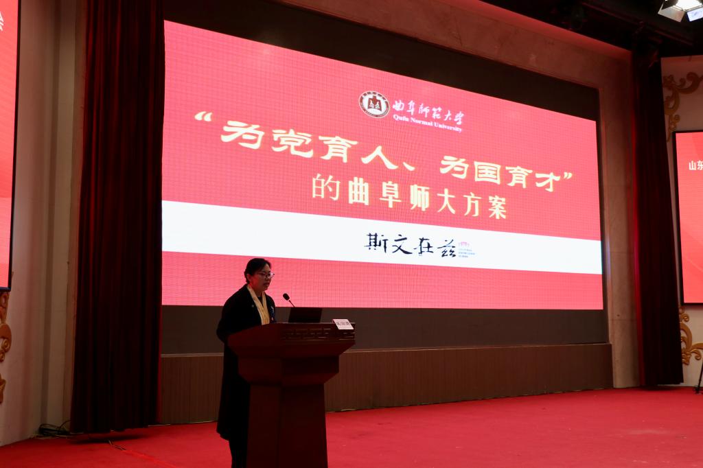 曲阜师大新闻中心讯(通讯员:杨珺斐 曹亚楠 )11月18日至19日,山东省高等学校学生教育与管理研究会2020年年会暨2020年山东高校辅导员工作论坛在潍坊举行。我校学生工作处处长姜美颖、辅导员工作论坛获奖辅导员杨珺斐等一行四人参加会议。姜美颖在大会上作了题为《“为党育人、为国育才”的曲阜师大方案》的主旨发言。