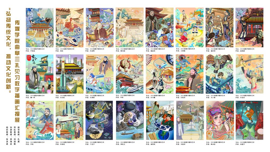 曲阜师大传媒学院讯 为进一步弘扬和传播传统文化,创作出富有孔子文化特色的系列创意作品,近期,传媒学院组织开展“弘扬传统文化,推动文化创新”——曲阜三孔见习数字插画汇报展。活动由传媒学院党委书记王宏杰担任策划指导、院长王焕景担任策展人、数字媒体系专业教师孔勇、李海龙指导。
