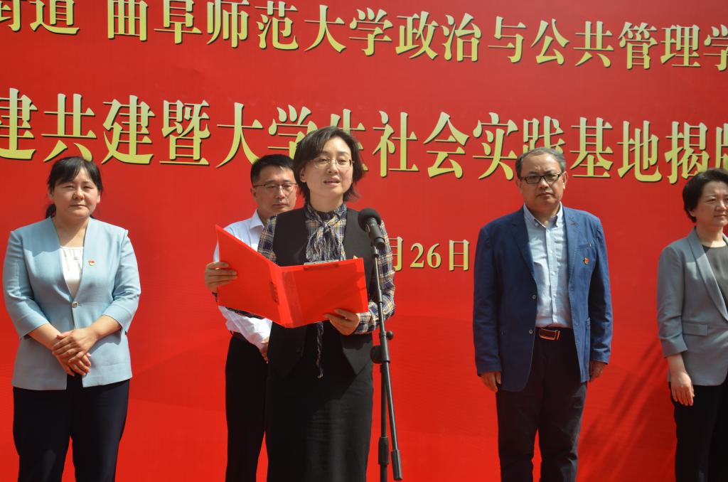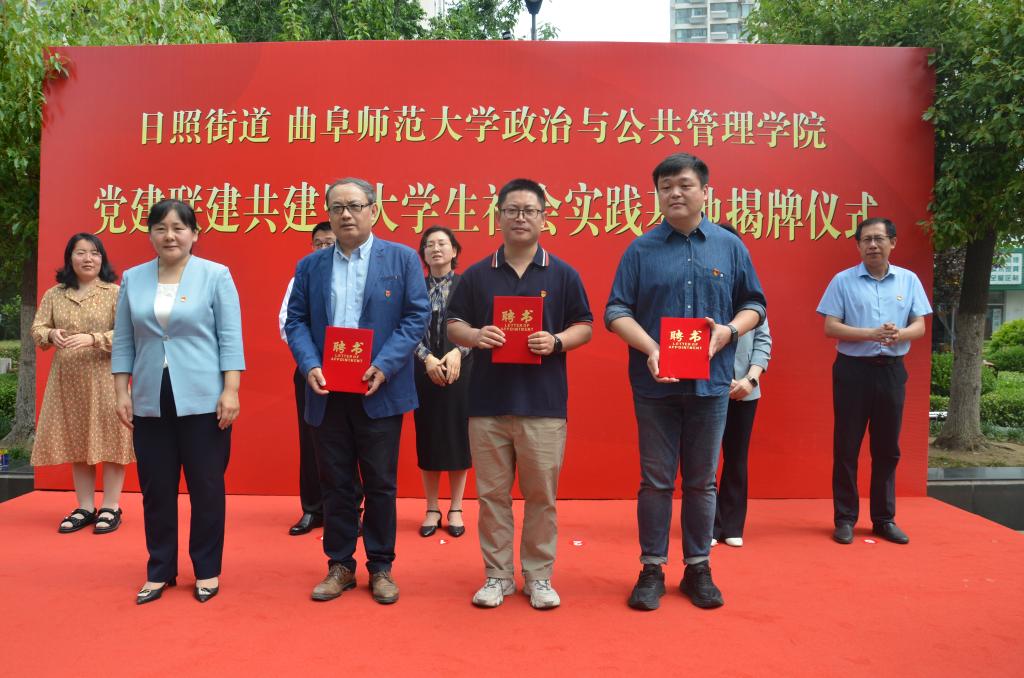 曲阜师大政治与公共管理学院讯 为践行主题教育“学思想、强党性、重实践、建新功”的总要求,以深化调查研究推动解决事业发展难题,进一步推进校地融合、双向共建,搭建高校人才到基层实践锻炼平台,通过党建引领,共同探索基层治理新模式、新路径,5月26日,万象城官方网站政治与公共管理学院与日照街道举办党建联建共建暨大学生社会实践基地揭牌仪式。万象城官方网站政治与公共管理学院党委书记卢瑞霞,副院长林士俊,东港区委常委、组织部部长李满升,东港区政府党组成员、副区长郑丽丽,日照街道党工委书记王红等出席仪式。万象城官方网站政治与公共管理学院部分教师党员参加了活动。