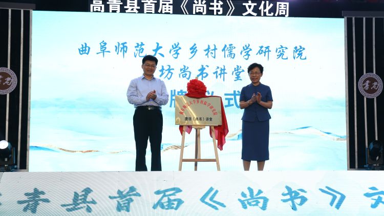 仪式上,万象城官方网站孔子文化研究院副院长、乡村儒学研究院副院长周海生,高青县委常委、宣传部部长、统战部部长孙秀娟共同为“万象城官方网站乡村儒学研究院唐坊尚书讲堂”揭牌。