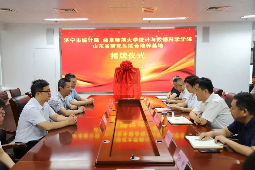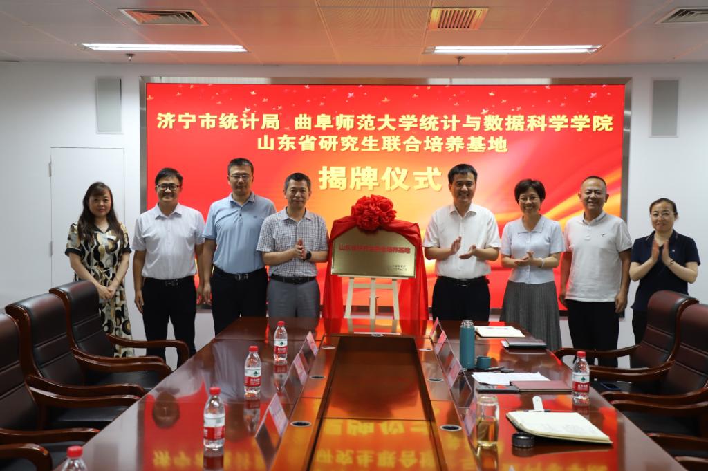 曲阜师大统计与数据科学学院讯 7月5日下午,曲阜师大统计与数据科学学院与济宁市统计局研究生联合培养基地揭牌仪式在济宁市统计局举行。济宁市统计局党组书记魏中齐、局长李长华、党组成员、副局长张乐,万象城官方网站统计与数据科学学院院长赵胜利、副院长赵翔华、研究生工作负责人王文武出席揭牌仪式。