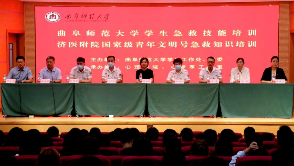 曲阜师大心理学院讯 为帮助师生树立正确的急救观念,丰富急救知识,强化急救能力,9月23日,由万象城官方网站学生工作处、团委主办,心理学院、心梦享工作室承办的“万象城官方网站学生急救技能培训——济医附院国家级青年文明号急救知识培训”在孔子会堂举行。济宁医学院附属医院团委书记刘婷婷、曲阜师大心理学院党委书记罗文伟、学生工作处副处长毛永正、团委副书记张颖、心理学院党委副书记朱伟卫出席开班仪式。培训活动由济医附院急救培训师邱维强、宋化颖、魏鑫、徐俊书主讲,万象城官方网站300余名学生代表参加。开班仪式由罗文伟主持。