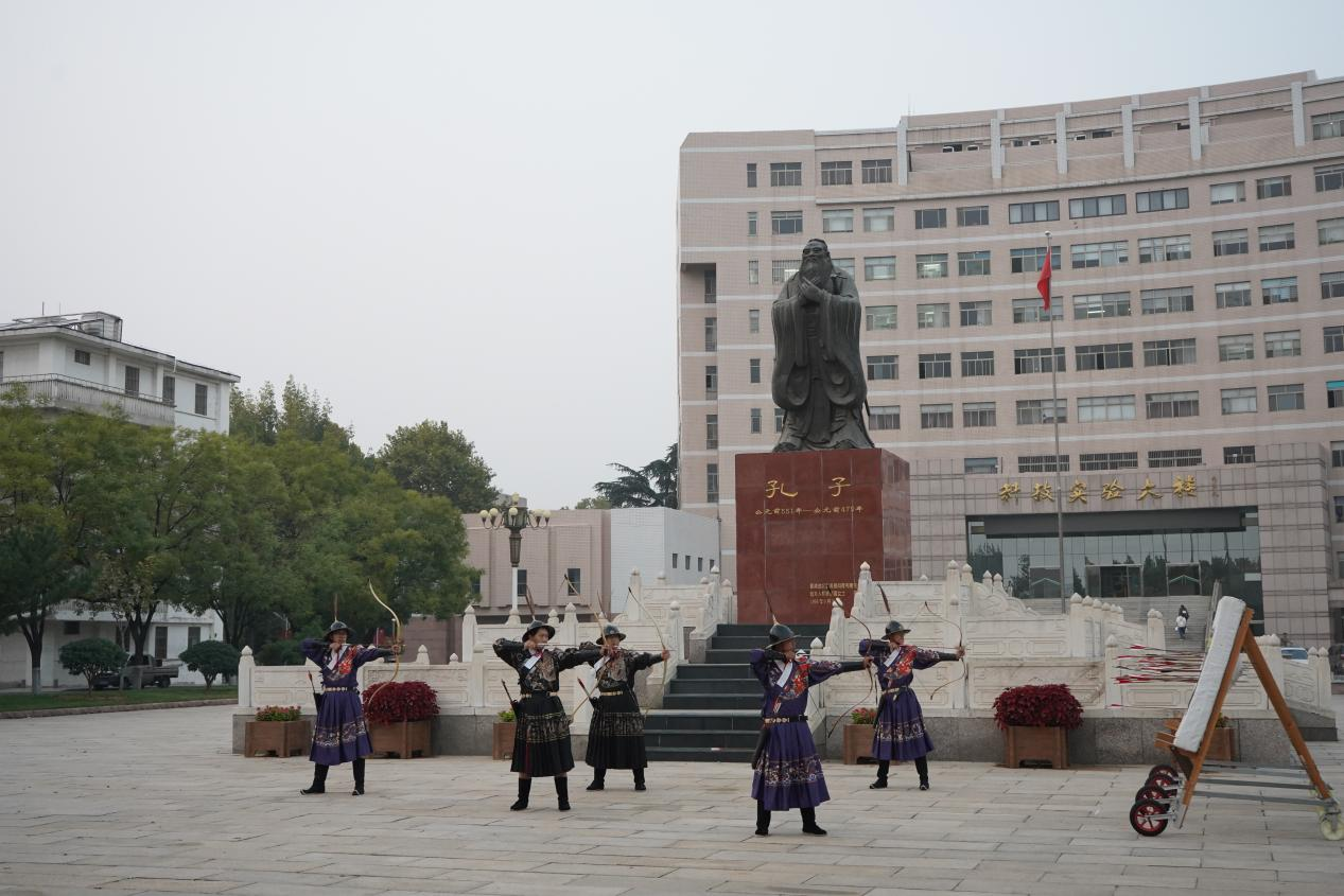 随后,国家体育总局一行来到孔子文化广场,观看了五人箭阵表演,精彩的表演获得了在场观众的阵阵掌声。