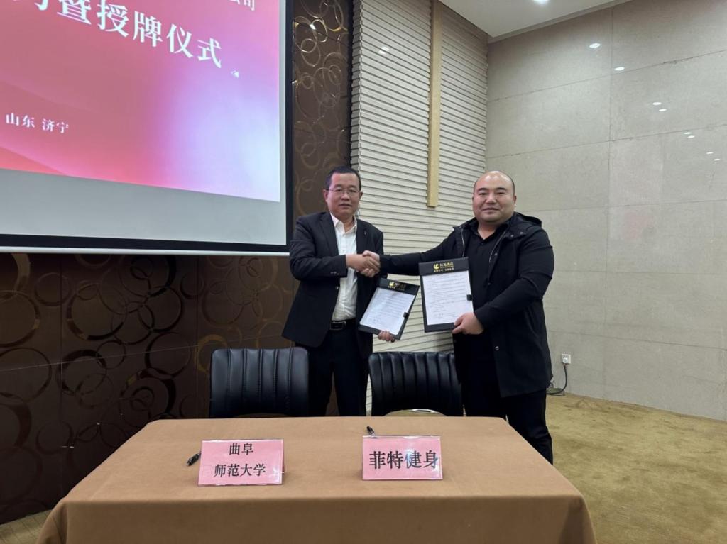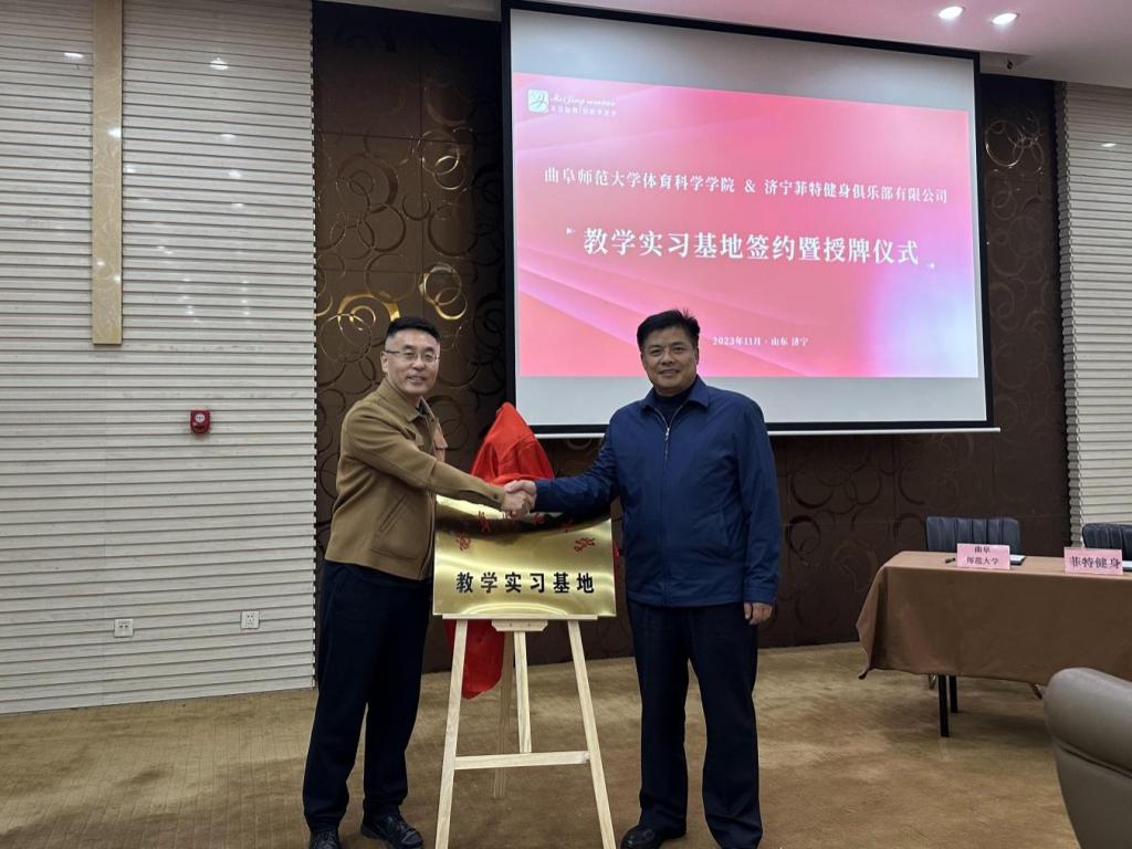随后,伊超与济宁菲特健身俱乐部有限公司代表签署了万象城官方网站教学实习基地协议;刘敏和白毅共同为基地揭牌。