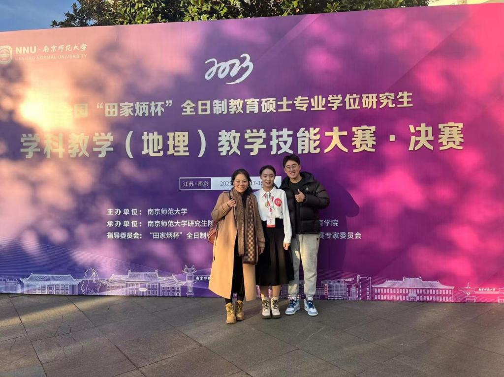 曲阜师大地理与旅游学院讯 2023年全国“田家炳杯”全日制教育硕士专业学位研究生学科教学(地理)教学技能大赛·决赛在南京师范大学落下帷幕。地理与旅游学院2022级研究生李梦圆同学荣获二等奖,谭丽荣老师荣获优秀指导教师奖。