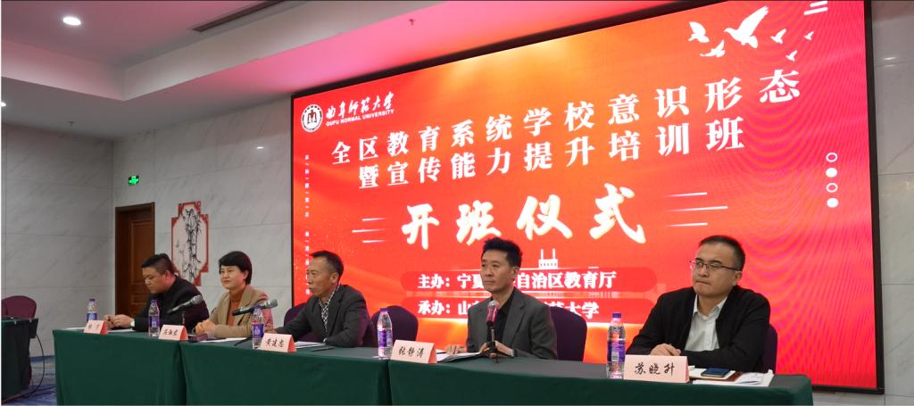曲阜师大继续教育学院讯 12月6日至8日,由宁夏回族自治区教育厅主办、曲阜师大承办的“2023年全区教育系统学校意识形态暨宣传能力提升培训班”在银川举行,各市、县(区)教育局,高等院校、区属中等职业学校,厅直属中小学宣传工作负责人和骨干人员以及宁夏教育电视台的编采人员近100人参加了学习,继续教育学院党总支书记茌淑君带队赴银川组织培训。开班仪式由宁夏教育电视台党总支书记黄建忠主持。
