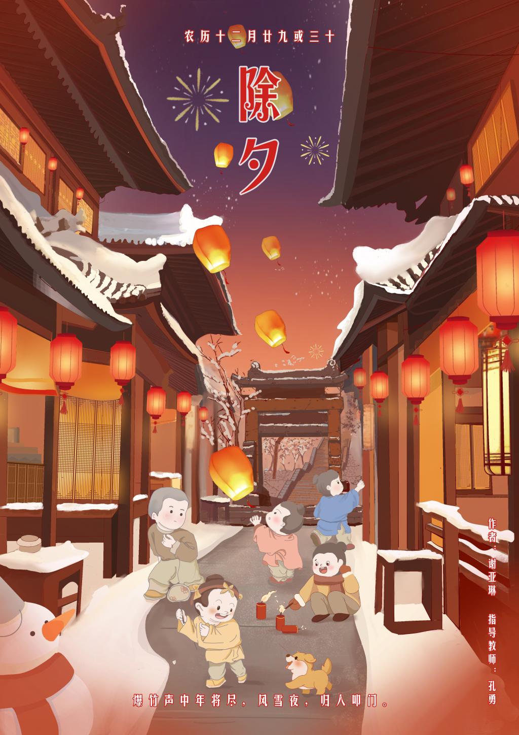 曲阜师大传媒学院讯  为进一步传承中华优秀传统文化,挖掘中国传统节日内涵魅力,近期,曲阜师大传媒学子以“绘传统节日历久弥新 展青年担当薪火相传”为主题,选取春节、元宵节等十五个中国传统节日进行系列原创数字插图作品创作。本次活动由传媒学院党委策划组织,数字媒体艺术系副主任孔勇指导创作。