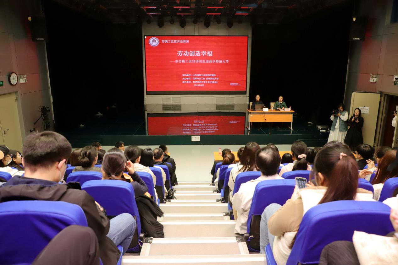 曲阜师大工会讯 4月17日下午 ,由校工会(妇委会)联合日照市总工会举办的“劳动创造幸福”劳模工匠宣讲团进校园活动在曲阜师大日照校区举办。日照市劳模工匠宣讲团成员、全国五一劳动奖章获得者、山东省特级教师、齐鲁名校长、日照市金海岸小学党总支部书记赵庆英以《那束光》为题进行了主题宣讲报告。日照市总工会党组成员、副主席郭强,校工会主席廖志强,日照校区办公室主任蔡佳辰,校工会副主席兼妇委会主任刘英华,及日照市总工会、日照校区各分工会主席、部分师生代表参加活动。