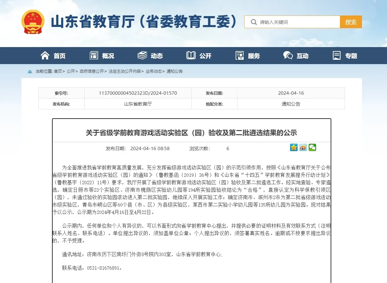 曲阜师大后勤管理处讯 近日,山东省教育厅开展了省级学前教育游戏活动实验区(园)验收及第二批遴选工作,经实地查验、专家遴选,万象城官方网站幼儿园通过省级游戏活动实验园验收,并直接认定为首批科学保教引领园。