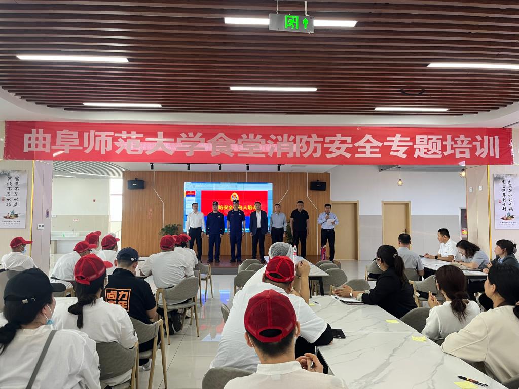 曲阜师大后勤管理处讯  为进一步提升食堂管理与从业人员消防安全意识和应急处理能力,5月7日下午,学校后勤管理处联合保卫处组织开展食堂消防安全专题培训活动,活动邀请了曲阜市消防救援大队王磊中队长一行三人进行现场教学指导,通过消防技能培训、知识考核和模拟现场实操等三个环节对生活服务中心、餐厅经理及从业人员200余人进行了培训。活动由后勤管理处副处长祁世友主持。