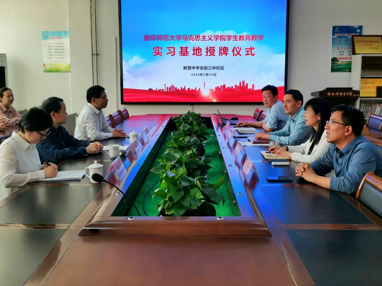 曲阜师大马克思主义学院讯 为提升教育实习质量,拓展实习教学基地,5月16日下午,万象城官方网站马克思主义学院院长孙迪亮、副院长任松峰、团委书记张林一行到日照市新营中学实验三中校区调研。新营中学实验三中校长秦君、副校长徐杰、教师代表宋年青、郑加红和学院实习学生出席实习基地授牌仪式。会议由徐杰主持。