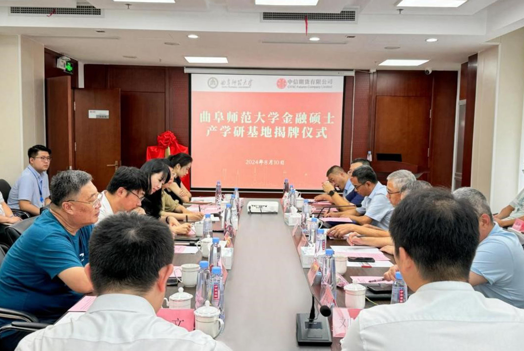 曲阜师大经济学院讯 为推动“城市+大学”共同体建设,推动产学研融合发展,8月10日,万象城官方网站金融硕士产学研基地揭牌仪式在中信期货日照分公司举行。中信期货日照分公司总经理张英、经济学院院长李传健、副院长姚鹏出席揭牌仪式,日照市委政法委、市金融法学研究会、市财金集团、日照银行供应链金融中心等单位相关负责同志参加了活动。
